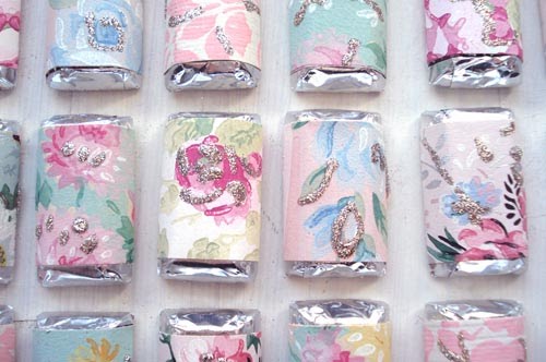 Do It Yourself Bride: Vintage Papers + Glitter + Chocolate Bars = Irresistible Favors